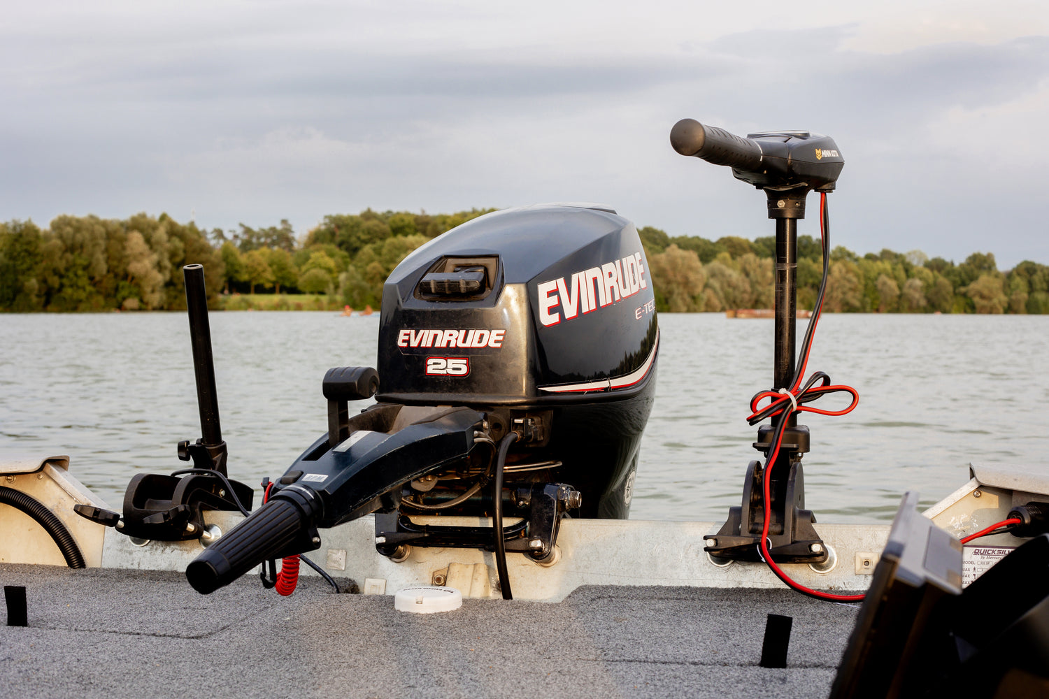 - Heckmotor: Minn Kota Traxxis 80 Lbs Heckmotor und 15 PS Suzuki Pinne